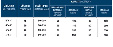 GEREKLİ GÜÇ : 5'' POMPA 70 HP VE ÜZERİ