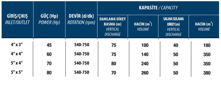 GEREKLİ GÜÇ : 4'' POMPA 50 HP VE ÜZERİ